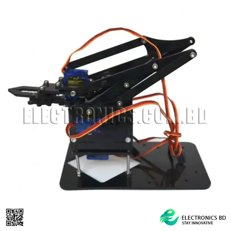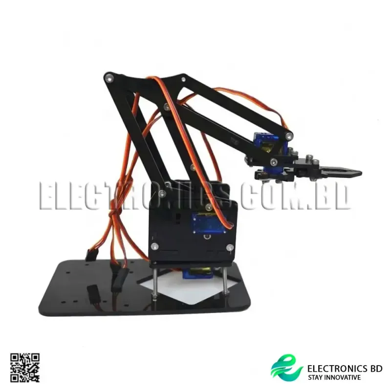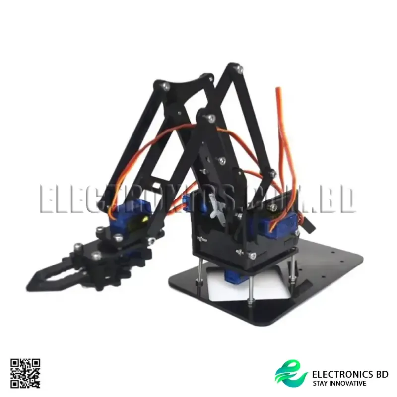 Designed to be compatible with Arduino and similar microcontrollers, this unassembled kit lets students and hobbyists build, customize, and program their robot arm. Its lightweight acrylic structure ensures easy handling while maintaining durability for repeated use.