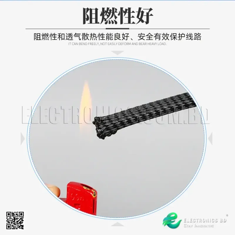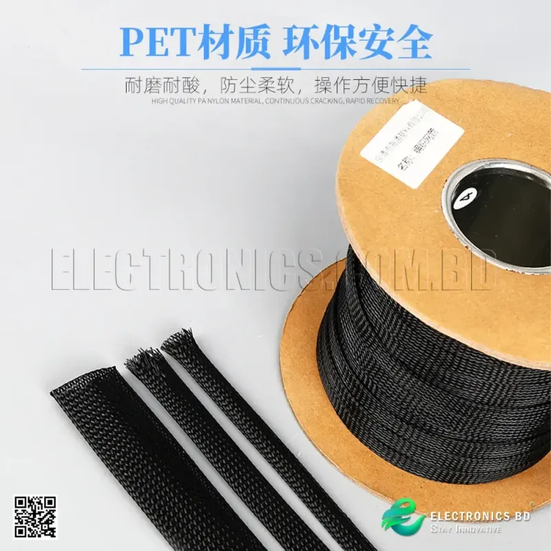 The 12mm Haitong PET Nylon Braided Mesh Tube offers reliable and effective protection for wires and cables. Made from durable PET Nylon, it features a flame retardant design, ensuring that your cables are safe from fire hazards. The black snakeskin pattern not only adds a stylish touch but also enhances the tube's durability. With a flat width of 12mm and a length of 1 foot, this braided mesh tube is ideal for use in various applications, including automotive, electronics, and home wiring projects.