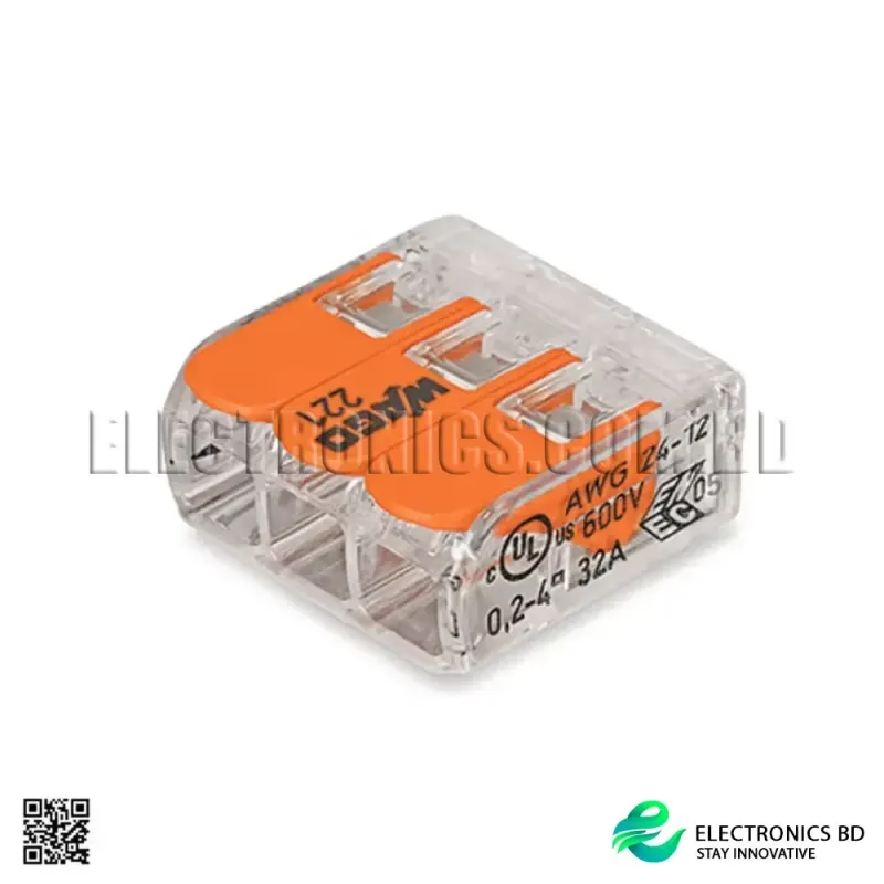 The 221-613 is a compact and powerful 3-port cable connector ideal for high-current applications. It supports up to 6mm² solid or stranded copper wires and is built for ease of use with its CAGE CLAMP® lever system. The transparent housing allows visual inspection, making it reliable and safe for use in lighting circuits, heavy-duty wiring, and control panels. Fully reusable and tool-free, it’s an electrician’s best choice for modern installations.