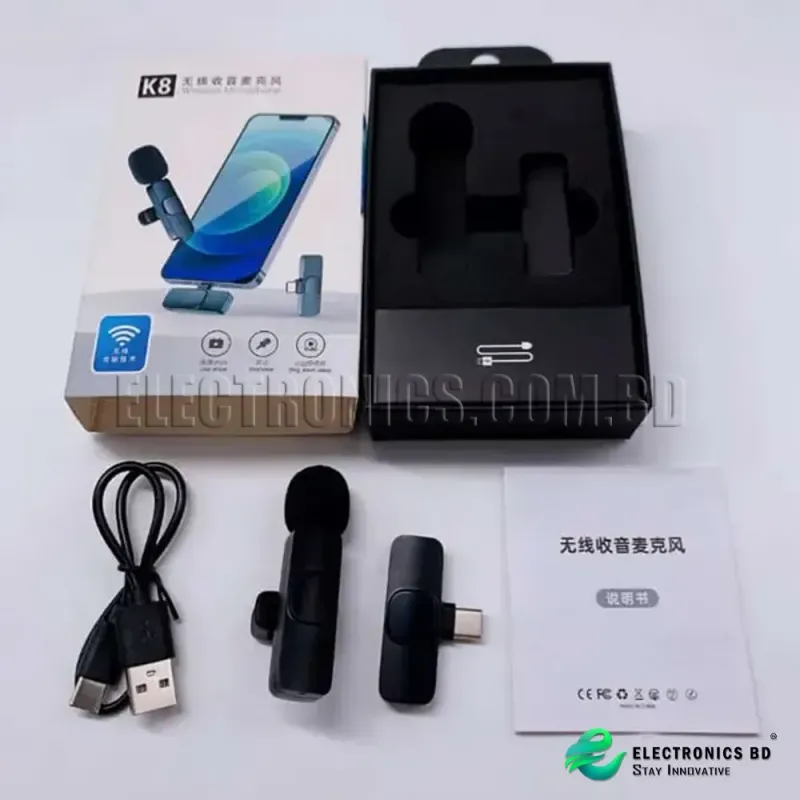 The K8 microphone provides high-quality wireless audio for content creators in Bangladesh,