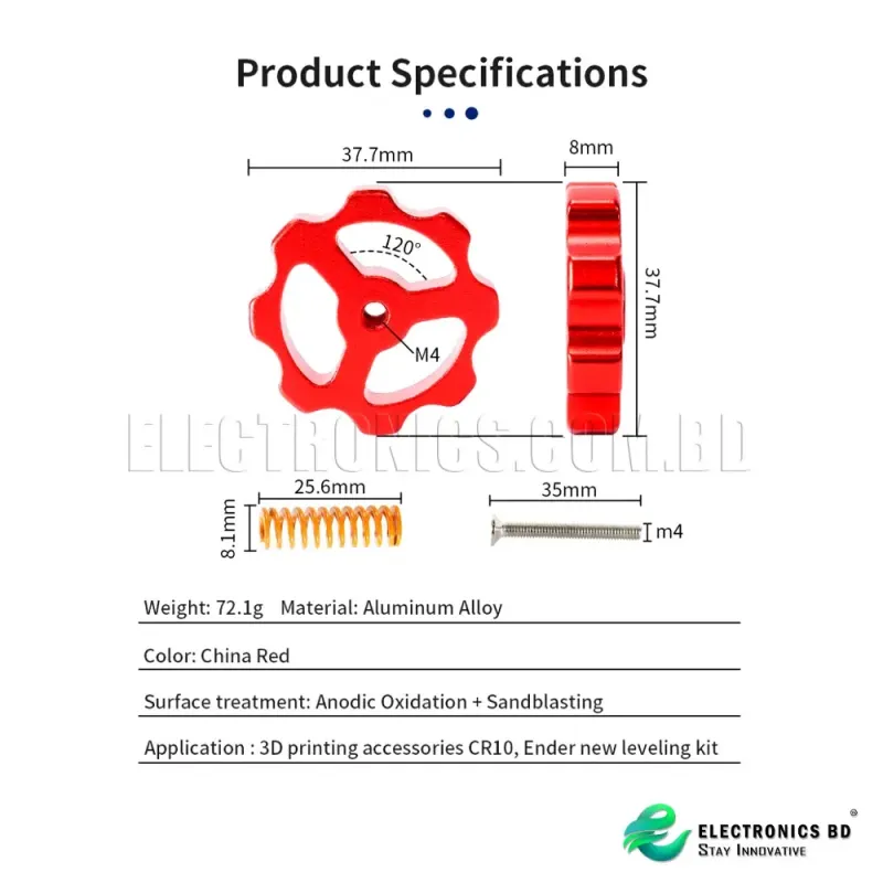 - Wide Compatibility: Suitable for 3D printers using M4 screws for platform leveling